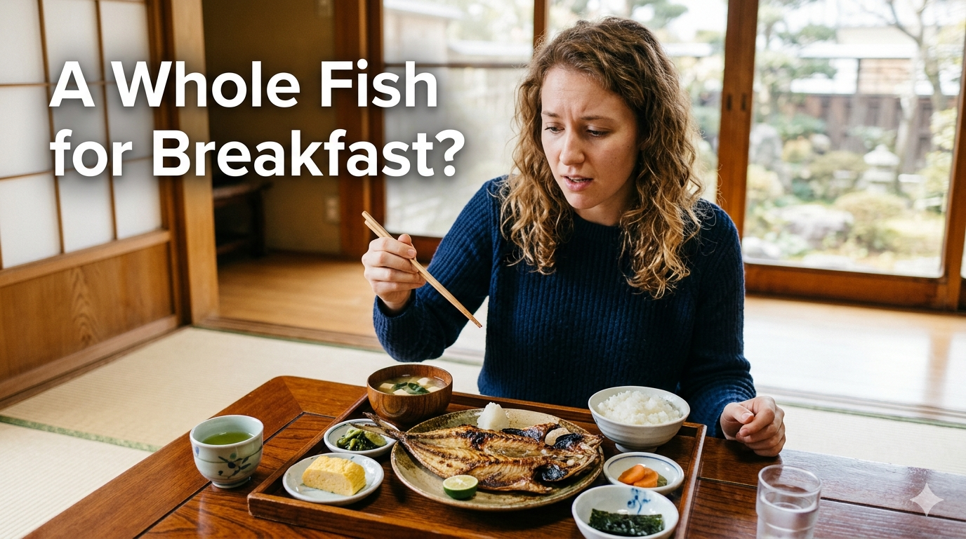 So there you are. You finally did it — you booked a stay at a real Japanese ryokan (traditional inn). The tatami floor, the yukata robe, the onsen bath… you feel like you’ve stepped straight into a Studio Ghibli film. Morning comes. Breakfast arrives. And on the tray, next to the miso soup and the perfectly steamed rice, is a whole fish — head, tail, bones and all — staring up at you.
