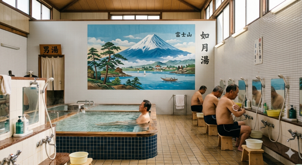 So let me tell you about the experience that locals have quietly been enjoying for centuries, hidden in plain sight behind those distinctive curtained doorways in your neighborhood: the sento (銭湯) — Tokyo’s beloved public bathhouse.